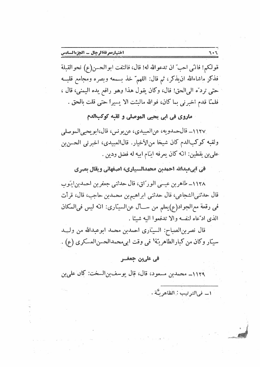 اختيار معرفة الرجال المعروف برجال الکشي - مصحح حسن المصطفووي - الصفحه ۶۰۶