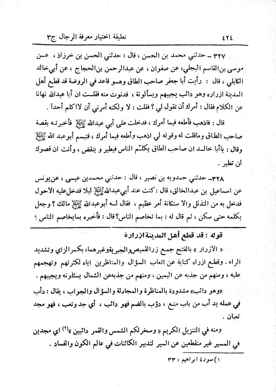 اختيار معرفة الرجال المعروف برجال الکشي - التحقيق السيد مهدي الرجائي - جلد ۲ - الصفحه ۴۲۴