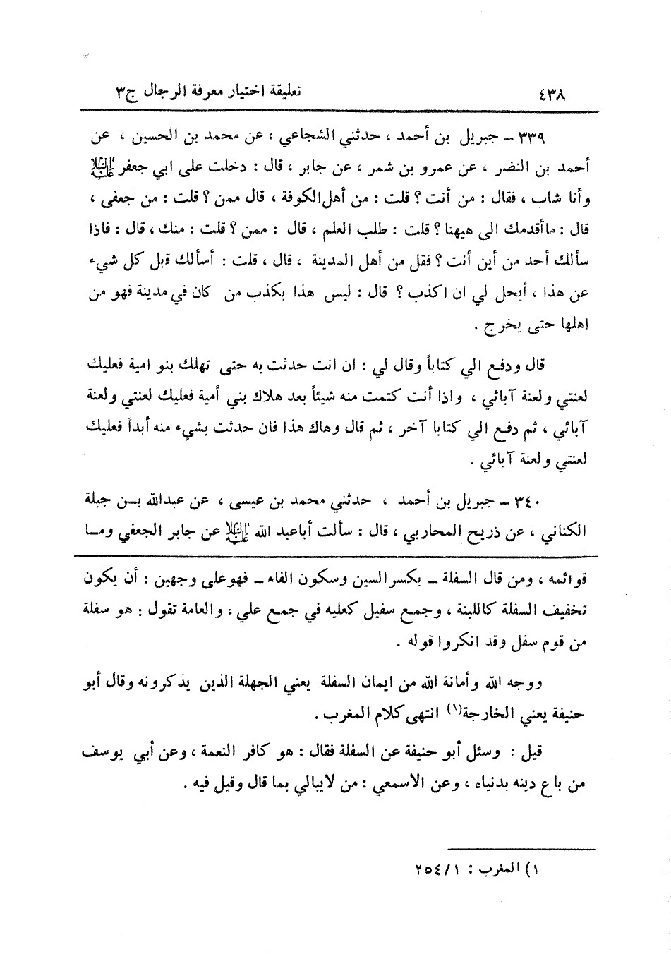 اختيار معرفة الرجال المعروف برجال الکشي - التحقيق السيد مهدي الرجائي - جلد ۲ - الصفحه ۴۳۸