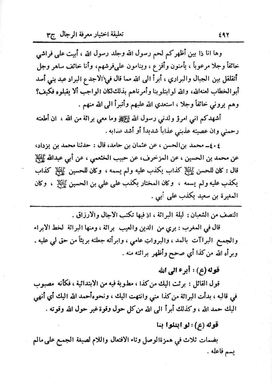 اختيار معرفة الرجال المعروف برجال الکشي - التحقيق السيد مهدي الرجائي - جلد ۲ - الصفحه ۴۹۲