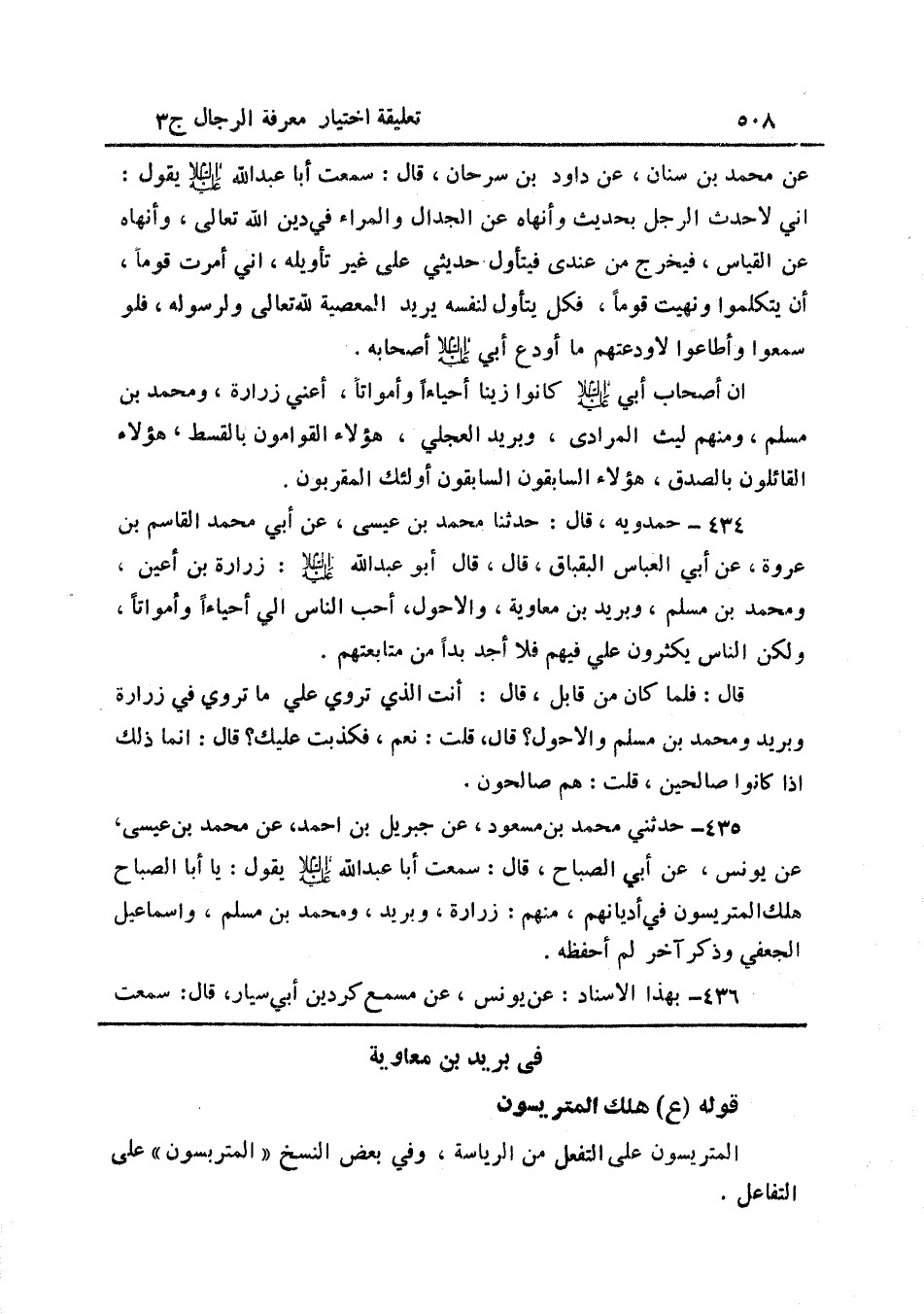 اختيار معرفة الرجال المعروف برجال الکشي - التحقيق السيد مهدي الرجائي - جلد ۲ - الصفحه ۵۰۸